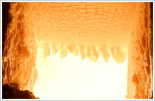 The materials of glass are generally melted by heat generated by burning heavy oil or gas, but the Super Green Glass melting furnace uses a heating method primarily based on an electric heating source in consideration for the environment. Electric heating is superior to combustion heating in efficiency and can lower energy consumption while significantly reducing CO2 emissions. In addition, we use gas or pure oxygen in combustion heating to eliminate nitrogen, which constitutes 80% of the atmosphere. This minimizes the thermal NOx (nitrogen oxides) generated when nitrogen is oxidized at high temperatures. This scheme also improves the heating efficiency, thereby cutting down the amount of fuel used for combustion as well as CO2 emissions.